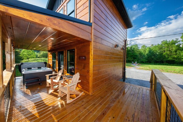 We invite you to be one of our first guests at this peaceful and centrally-located cabin! Come see beautiful, endless skies from the deck and fire pit! Our cabin offers a California King bed, waterfall open-air shower, a brand new hot tub, WiFi, two sleeper sofas, privacy, and excellent proximity to Pigeon Forge, Gatlinburg, and Knoxville. No steep mountain roads here! It's a breeze to get to the seclusion of Kirtland cabin. Come get away from the hustle and bustle to enjoy solitude and quiet!