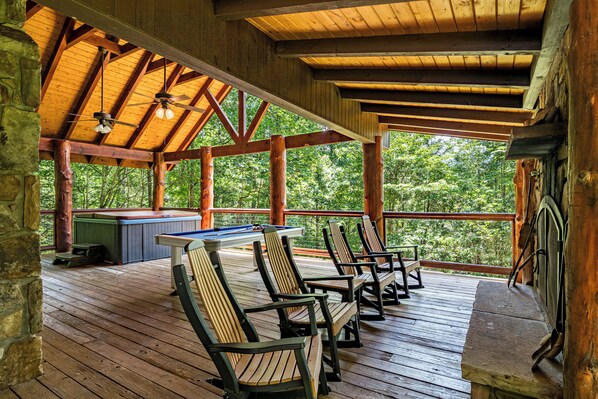 Escape to the Smoky Mountains and unwind in this cozy retreat. Enjoy a king bedroom, queen bedroom, and spacious living room with wood burning fireplace on the main level. Play pool or soak in the hot tub on the expansive covered deck while taking in mountain views.