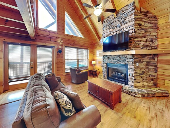 Spacious 3-level cabin with mountain views, game rooms, hot tub + more!