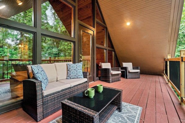 Nestled in the heart of Pigeon Forge, Around the Bend cabin offers an unforgettable experience. Unwind with a roaring fire pit or relax in the luxurious hot tub and enjoy wildlife views from your balcony. With modern amenities like a fully equipped kitchen, washer, and dryer, this cozy retreat also features a brand-new game room for entertainment.