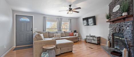 Nestled in the Smoky Mountains, Smoky Mountain Pool Lodge offers a luxurious retreat with four king bedrooms and space for up to 14. Enjoy quality time together by the 2-story stone gas fireplace, or compete in friendly games at the pool table & multigame arcade.