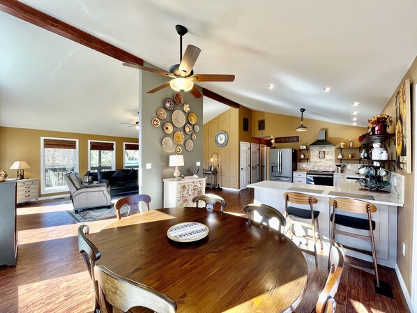 fingertips, including a handy dishwasher and microwave. Our inviting dining