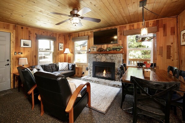 Smart TV, fireplace, computer monitors - Cozy Family Cabin with Great Outdoor Space in Ideal West Village Location (Shaver Lake)