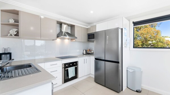 Fridge, microwave, oven, stovetop - Tomaree Road 16 - Modern duplex just 200m to Shoal Bay Beach, with room for the extended family (Shoal Bay)