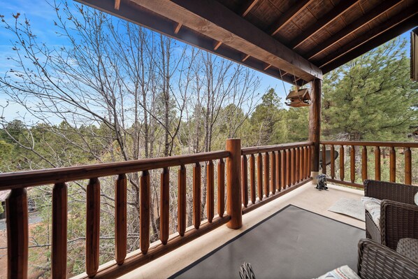 Kick back and relax in the comfortable and warming home. Located amongst the trees in Show Low, the views are beautiful weather it’s the snow on the trees or the sun shining through. This is a 2 bed 2 bath apartment with everything you would need in a kitchen and dining/living space as well. Included is also a washer and dryer, balcony with a view, a Blackstone for , and more.