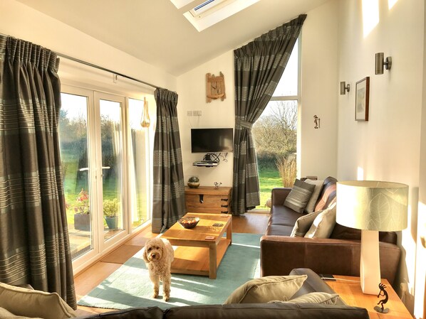 We are in quite a rural position so its very peaceful and the perfect place to chill but only 1 1/ 2 miles away from beautiful Branscombe with two very nice pubs and 3 miles from the bustling town of Sidmouth with numerous cosy cafes, cute shops and lovely restaurants mostly all dog friendly.