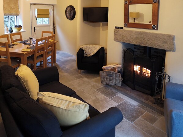 Living/dining room: 42" Freeview TV, Multi-Fuel Burner