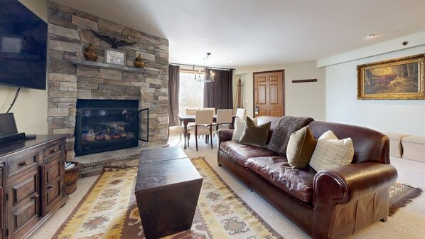 Terracehouse 93 provides an inviting retreat in the heart of Snowmass, combining comfort with a prime location. Spanning 988 square feet, this two-bedroom, two-bathroom condo is perfect for families or small groups. The master bedroom features a king bed and an en-suite bath, while the guest bedroom is furnished with two twin beds and a second bath. The living area, with its gas fireplace, offers a cozy space to relax after a day of adventure. The fully equipped kitchen boasts granite countertops, and additional features include ceiling fans and a ski locker.
