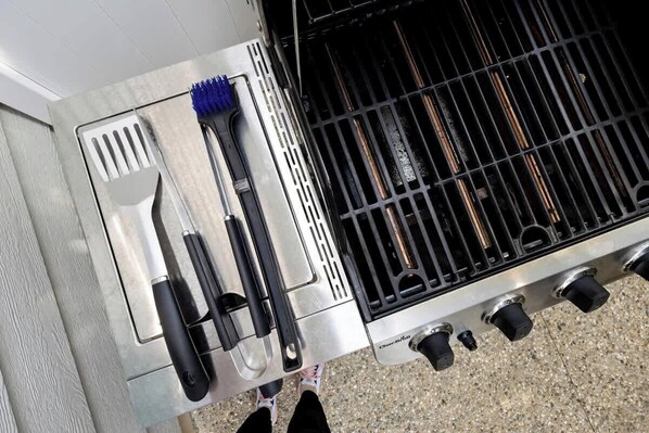 We should mention the kitchen is dreamy, too, with all you need for cooking up scrumptious vacation meals, including top-of-the-line stainless-steel appliances – yes, a dishwasher, too – a full array of cooking and eating utensils, pots, pans, plates, bowls, plenty of room to move around, and a cool Keurig coffeemaker, plus some essential pantry items.