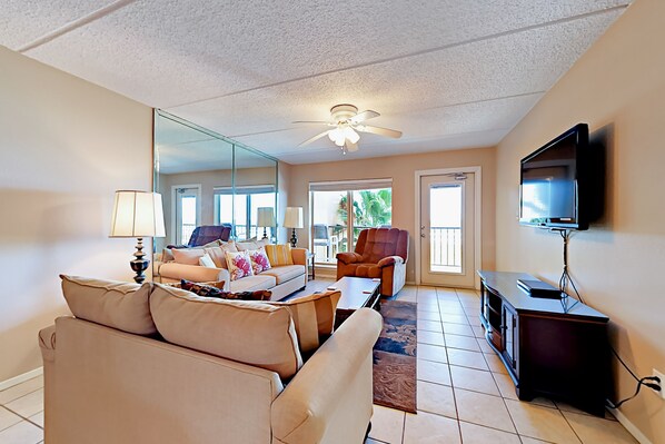 Between the sleeper sofa in the living area and two bedrooms, this condo comfortably sleeps six guests total.