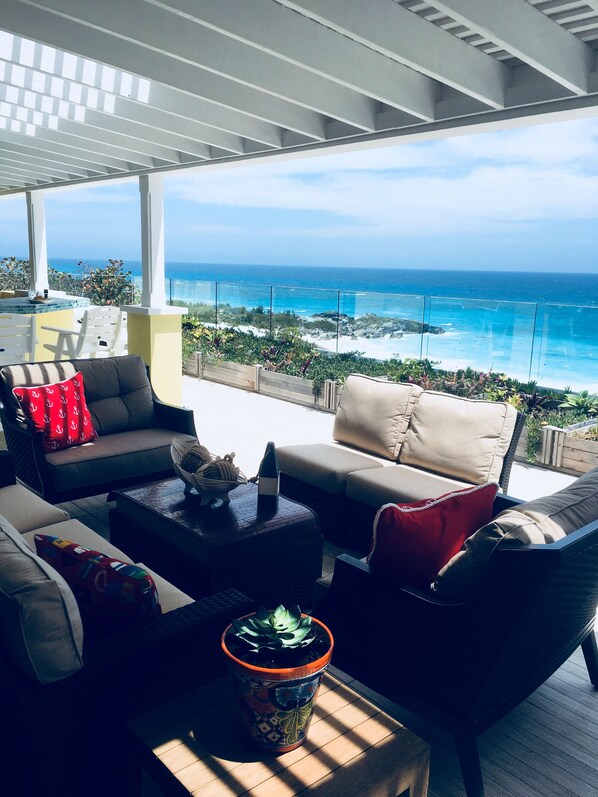 Unwind and rejuvenate on the deck, listening to the lapping waves from the beach. The deck is 75'x22.5' and includes an outdoor bar, hot tub, bbq and loungers...so room for you all to spread out. Access to the house is downstairs set of stairs so please take that note for anyone with mobility issues.