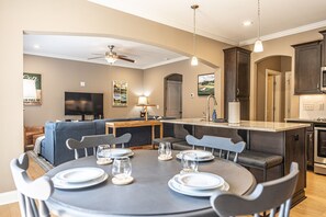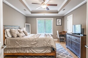 In Downtown Southern Pines, Mulligan Manor is your perfect golf retreat. Enjoy hearty breakfasts in the fully equipped kitchen and unwind with games, poker set, or corn hole after a day on renowned courses like Pinehurst 1-10 and Talamore & Arnies Mid South. This home offers a peaceful back patio to relax with freshly brewed coffee amidst pine trees.