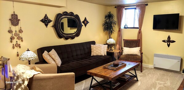 Owner put a lot of thought into decorating and furnishings. Very cozy place to stay. Lots of amenities! We did not have time to use outdoor area but it was very inviting and peaceful.