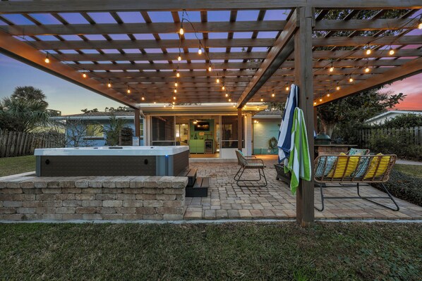 Indulge in the ultimate getaway at our serene retreat! A stones throw away from the beach. This outdoor haven combined with all of the cozy comforts of home. Centrally located to all of the fun activities, Salty on Second is sure to bring your vacation or weekend getaway to the next level. Unwind with a soak in the hot tub after a day at the beach or just relax in the screened in Florida room. Providing a private, fully fenced in yard for your 4 legged friends.
