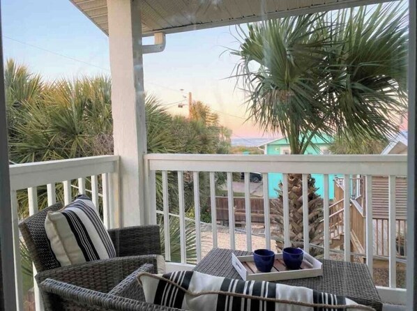 This is a large home that has two townhouse units side by side (each with 2 bedrooms and 2 baths, a kitchen, living room and dining room of it's own) that is connected by a door in between them. Perfect for extended families that want to travel together but also need a little privacy and space of their own! Numerous beach access points all within walking distance of the home. Two balconies off the home with seating to enjoy the salt air and Florida sunshine with ocean peaks . Two sets of washers and dryers (one in each unit) for Guest use during your stay!