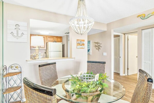 Our OCEAN FRONT condo is just a short boardwalk to miles of beautiful beaches. Updated, modern, comfy living in this 2 bedroom condo w a balcony that allows generous views of the ocean! Features 2 pools (1 heated), 5 hot tubs, tennis courts, a pickle ball court, and bocci. Just 10 mins from the fabulous Old Town Historic District. Enjoy a spectacular sunrise with your morning coffee. Relax with the whole family at this peaceful place to stay. Must be 23 to rent.