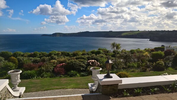 Outside there are two garden areas - a private garden to the front receives sun throughout the day - and is decorated with palms and exotic plants which thrive in Cornwall's sunny clime. There is a long raised bed planted with flowers and shrubs . Dining table and seating for four with kettle BBQ.
