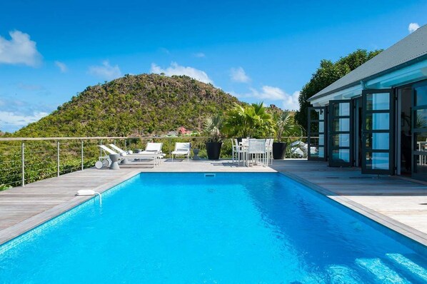 Welcome to Villa Lumiere, a contemporary 2-bedroom villa located in the hills above Flamands bay, within minutes of several beaches and villages. This hillside villa enjoys exquisite views of the ocean and surrounding islands. This recently renovated villa combines classic local architecture with custom furnishings and art from around the world. Made up of three pavilions, built around a spacious pool and terrace, the blend of indoor and outdoor spaces at Villa Lumiere is an ideal spot to savour the glamorous life on St. Barts.