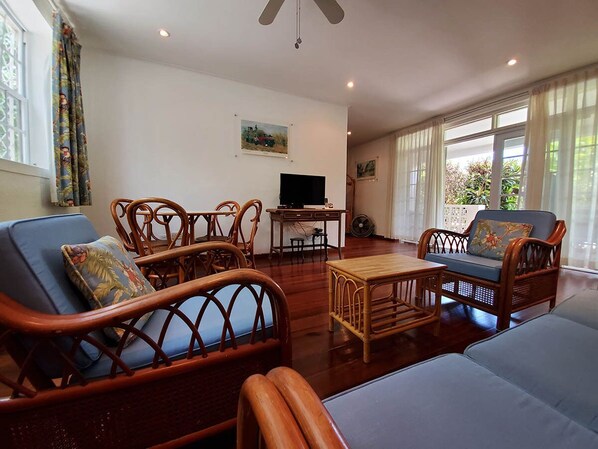 Nicholas Abbey - Apartment N, situated in a quiet garden near Dover Beach, offers the perfect blend of tranquility and convenience. Unwind on the beach with comfortable chairs or stay connected with high-speed wireless internet from your spacious one-bedroom apartment.