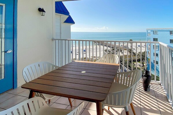 Step inside and feel your cares drift away as the fiery sunsets melt into the Gulf. Beach Palms 508 is as charming as it is comfortable and boasts a coastal chic atmosphere with lots of extra amenities. Enjoy the lovely private balcony and relax while taking in the miles of shoreline. Tasteful coastal flair features an open layout and beach view backdrop. The living area, with direct access to the balcony, offers inviting furniture and a smart TV. The kitchen is pleasantly appointed with granite countertops and stainless-steel appliances. The dining table has enough space for six people with a bonus breakfast bar for two.
