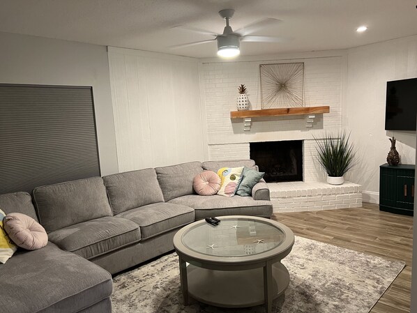 After a day at the beach, just 3 miles away, unwind in this remodeled retreat with two living rooms and a screened porch. Enjoy shopping and dining nearby or take advantage of the swimming pool, recreation center, and large park right behind the house.