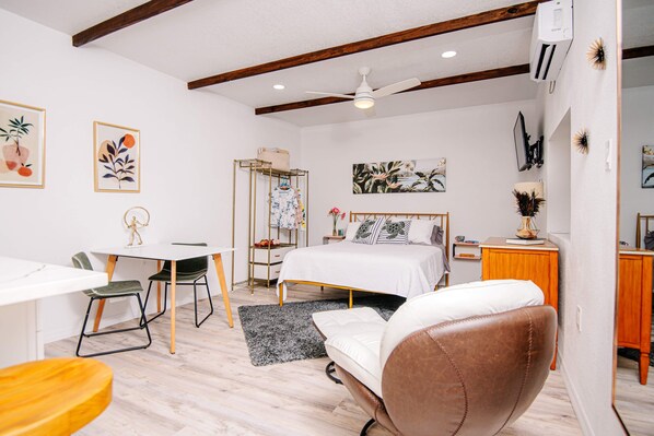 Make yourself at home in this immaculate studio in sunny Clearwater. Our stylin’ space features a very comfortable queen bed, quiet, ice cold AC, WiFi, and just the perfect amount of space for one (or 2 guests) to chill or work remotely. The peaceful atmosphere and modern amenities make it a perfect spot for your affordable vacay stay. The location is ideal: half a mile to grocery store and beautiful disc golf park, just 10 minutes to Safety Harbor for fantastic gourmet goods and dining, 15 minutes to Dunedin for fabulous dining, live music and shopping. And best of all, you’re close to Clearwater Beach and surrounding beaches! A clean laundry mat is 5 minutes away or you can utilize a laundering service for added convenience.