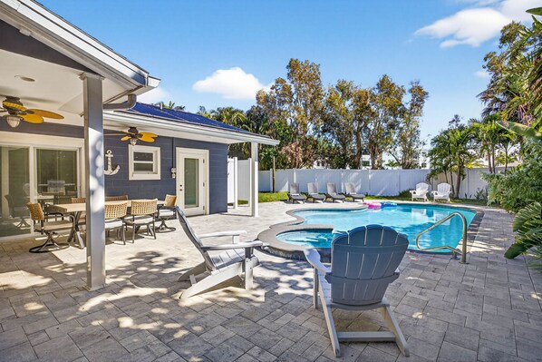 Welcome to Blue Lagoon, your tranquil getaway nestled on Indian Rocks Beach. This charming 3 bedroom, 2 bath haven invites you to unwind by a private heated pool, complete with a soothing bubbler sitting area - a perfect alternative to a hot tub. Inside, find entertainment for all Just a leisurely ten-minute stroll from the sands, Blue Lagoon promises a serene beach vacation experience. Ready for a morning coffee? We have a Keurig for a quick cup or a coffee pot for more