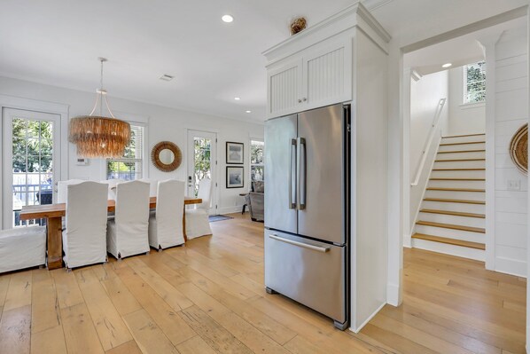 Fridge, microwave, oven, stovetop - Houdini by the Sea! Heated Pool and Newly Landscaped Pool Area | Walk to Beaches and Village Area (Saint Simons Island)