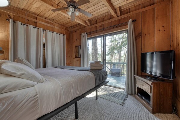 This secluded rustic cabin with a wrap around deck sits in the National forest and near Coopers Creek. Both bedrooms are on the main floor. You can hike the trails during the day then spend your evening relaxing in the screened porch overlooking the forest.
