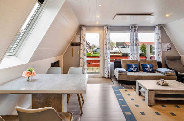 The Schmidt holiday home is located in Südbrookmerland and offers everything you need for a relaxing getaway. Spread over two floors, the property features a living room with a sofa bed for 2 people, a well-equipped kitchen, 2 bedrooms and 1 bathroom, accommodating up to 4 guests. Amenities include Wi-Fi, a TV, a fan and a washing machine. You can also enjoy a private sauna for an additional fee, and there is a table tennis table on the property.