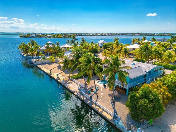Revel in mesmerizing water vistas and the gentle rustling of palm trees as you unwind beneath the charming tiki hut with your preferred libation. Embrace refreshing dips in your secluded pool or set sail on your boat for unparalleled world-class fishing adventures just moments from your doorstep. While abundant activities await at this idyllic retreat, for those eager to traverse the Keys, the vibrant energy of Key West is a mere 25 minutes away, while the enchanting allure of Marathon beckons within 45 minutes, ensuring an unforgettable Florida Keys experience.