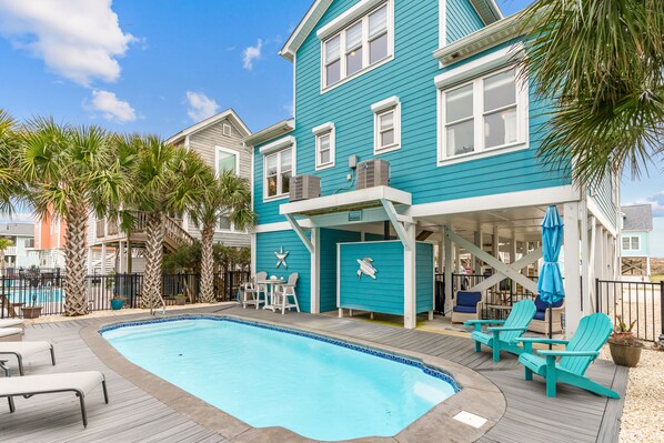Holiday home with private pool, steps from Holden Beach