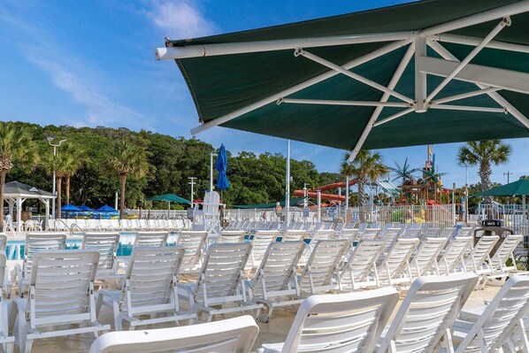 ✓ 4-acre water park with slides + lazy river