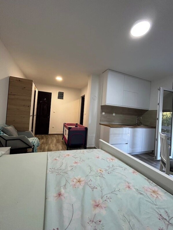 Nestled in a quiet area, this studio apartment offers a serene retreat for couples. Enjoy the beautiful garden view from the balcony and take advantage of its proximity to Maljevik beach and Sutomore beach.