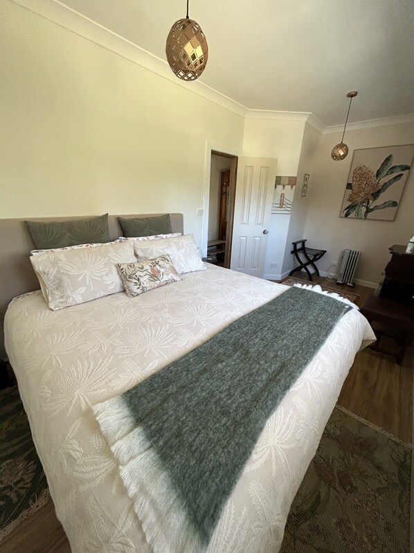 *The banksia bedroom can be configured to take 2 beds - the original king plus an added king single so we can now offer 4 separate comfy beds for a maximum of 4 guests. Please let us know if you would like this option this at the time of booking with a message - we do require a minimum of one week’s notice so we can rearrange the room and add the extra king single bed for you.