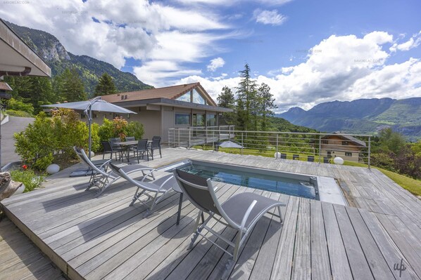 Apartment for 6 people with exceptional views of the lake and mountains, private outdoor heated spa pool all year round