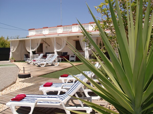 Spacious (180m2) with everything you need for a holiday with privacy and comfort: fully furnished and equipped, air conditioned, fenced enclosed space with grill, swimming pool, with shade tables and garden chairs and with sun loungers and lawn artificial, where you can dine, read, play, sunbathe or simply enjoy the scenery and private fenced parking.