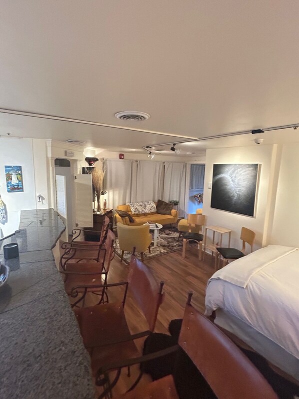 In the heart of Telluride's commercial core, this studio condo boasts an AAA+ location with a private porticochere entrance on Main Street. Enjoy a gourmet dinner with friends using the basic cooking supplies and induction pots and pans, or simply relax in your high-end thermal elastic queen bed.