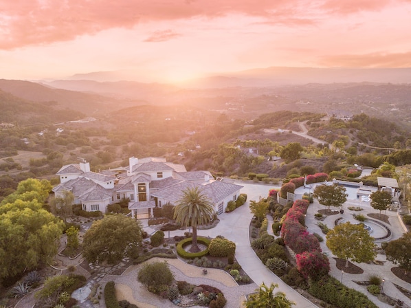 Experience luxury Temecula living like never before at Camila, a modern architectural mansion abundant with style, amenities, and comfort. Equipped for up to 18 people with an additional guest house, this estate will stun your group from the moment they enter past the hybrid indoor/outdoor koi pond. Every outdoor area — including a private pool and hot tub, balcony lounge, and multiple al fresco dining spaces — features incredible views of the surrounding valley. Inside, Camila boasts a sprawling floorplan complete with dedicated billiards and recreation rooms, spacious bedrooms, and a chic kitchen (easy to keep stocked with convenient grocery shopping in town). High above the valley below, this breathtaking mansion is ready to show your group an upscale luxe experience they won't forget!