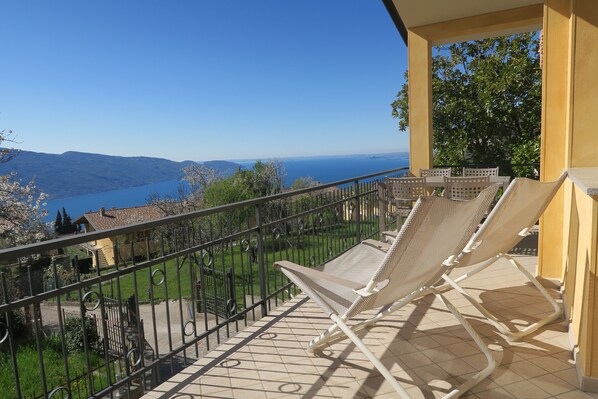 • a large furnished terrace with stunning views over Lake Garda and Monte Baldo – the ideal spot for breakfast, dinner or an aperitif with a view