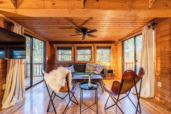 Nestled in a mountain oasis, Ursa Minor offers a cozy retreat for couples or small families. This charming A-frame has seasonal views of the lake and surrounding mountains, with an open concept living area and spiral staircase leading to a sleeping loft with private 1/2 bath. Unwind by hiking nearby trails or rent kayaks at Lake’s End Marina just 2 miles away.