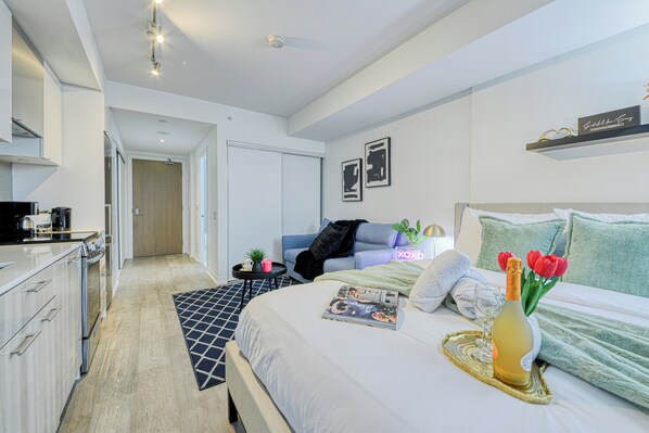 Refined Toronto Studio Stay with Sofa Bed. Prime location!
