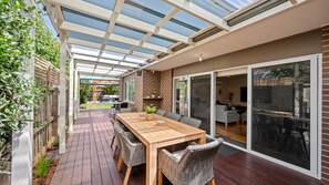 Torquay North offers a stylishly furnished beach house with ducted gas heating and split-system air conditioning, ensuring comfort year-round. Unwind at the sun deck in the garden or gather around the outdoor setting for lively meals with family and friends.