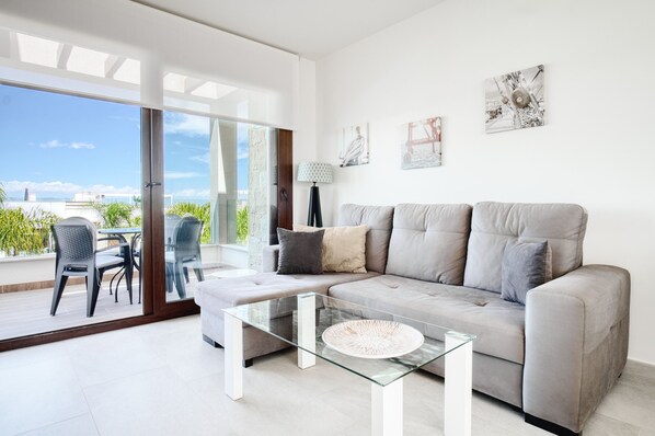 Boasting a beautiful view of the Mediterranean Sea, the holiday apartment Appartment Rosa See is located in Los Balcones. The 50 m² property consists of a living room, a fully-equipped kitchen, 2 bedrooms and 2 bathrooms and can therefore accommodate 4 people. Additional amenities include Wi-Fi with a dedicated workspace for home office, a smart TV with streaming services, air conditioning, a washing machine as well as beach/pool towels. A baby cot and a high chair are also available. This vacation rental offers a private outdoor space featuring an open terrace, a covered terrace, and a balcony.