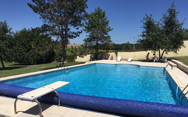 We had a great family stay here, big and spacious with plenty of room for my family from Ireland. The pool was amazing; we asked for the alarm to be turned off and the people looking after the property were very quick to sort it. Owner is very responsive as well with any queries we had. the grounds are lovely with a big garden out the back. Local town is a 10 min cycle away where we got daily bread and croissants. Asd there were 15+ of us, we needed extra outside tables / chairs again, which they were happy to sort out quickly - not a problem.