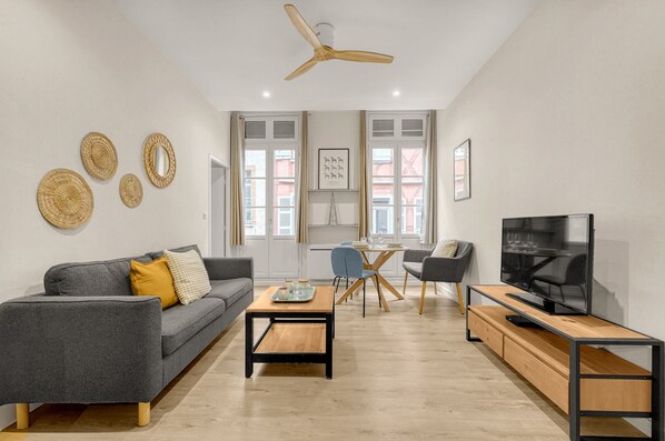 Cocoonr Agency offers you this charming apartment for rent in Toulouse, located in the historic heart of the old town. With a surface area of 69 m² and able to accommodate up to 4 travelers, it is located on the 1st floor (no elevator). It comprises an attractive living room, a fully-equipped kitchen, two bedrooms and a shower room (with shower and double basin). Cleaning is included in the rental price, and 4* hotel-quality linen is provided (sheets, towels, tea towels). Your bed will be made up on arrival.