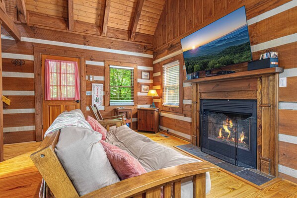 Escape to Walker cabin, nestled in the heart of Townsend's Peaceful Side of the Smoky Mountains. Unwind with a soak in the large jetted tub, or snuggle up by the fireplace and catch your favorite movie on Smart TV. The cozy living room is perfect for game nights, while outdoor enthusiasts can enjoy grilling on the deck or swinging in a porch swing amidst nature.