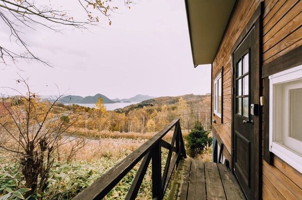 Great view Lake Toya 2bedroom log cabin provides laundry facilities and more.
