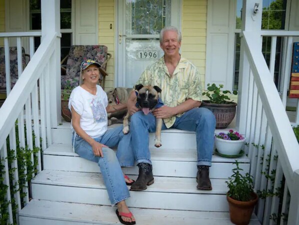 Sitting on the front porch you’ll catch the sun going down right behind our horse neighbors Abby-the white one & Shyann-the painted one.