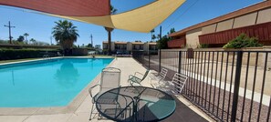 Escape to a serene retreat, 10 minutes from Saguaro National Park East. This spacious unit offers a fully equipped kitchen and private balcony overlooking the sparkling pool. With in-unit laundry and covered parking, enjoy convenience during your stay.